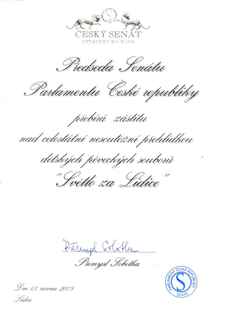 | © Světlo za Lidice | Celostátní přehlídka dětských pěveckých sborů | Grafika: Otakar Korolus | Kód: BERÁNEK, spol. s r.o. |