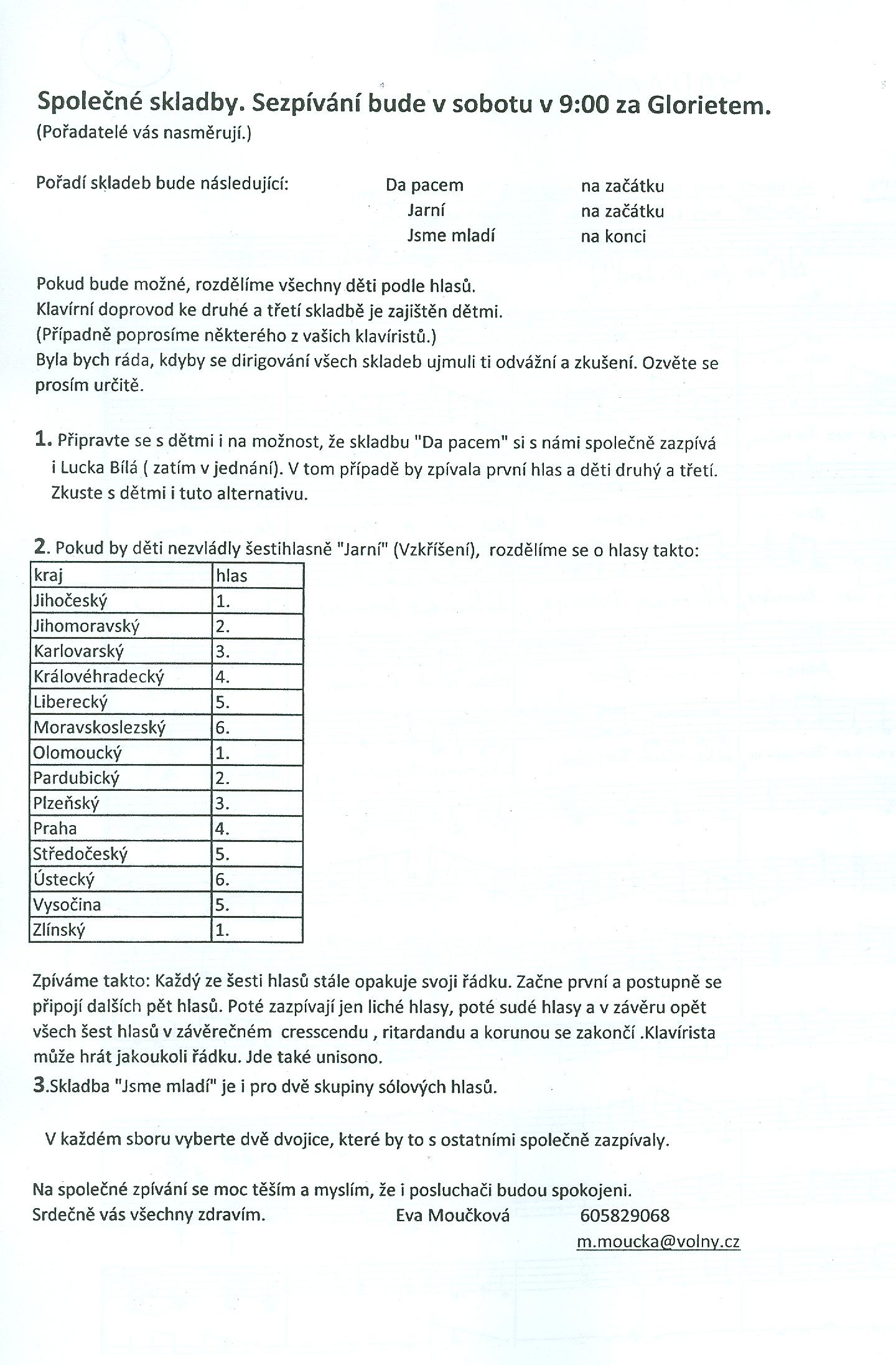 Na této stránce naleznete všechny dokumenty související s organizací a průběhem přehlídky pěveckých sborů.